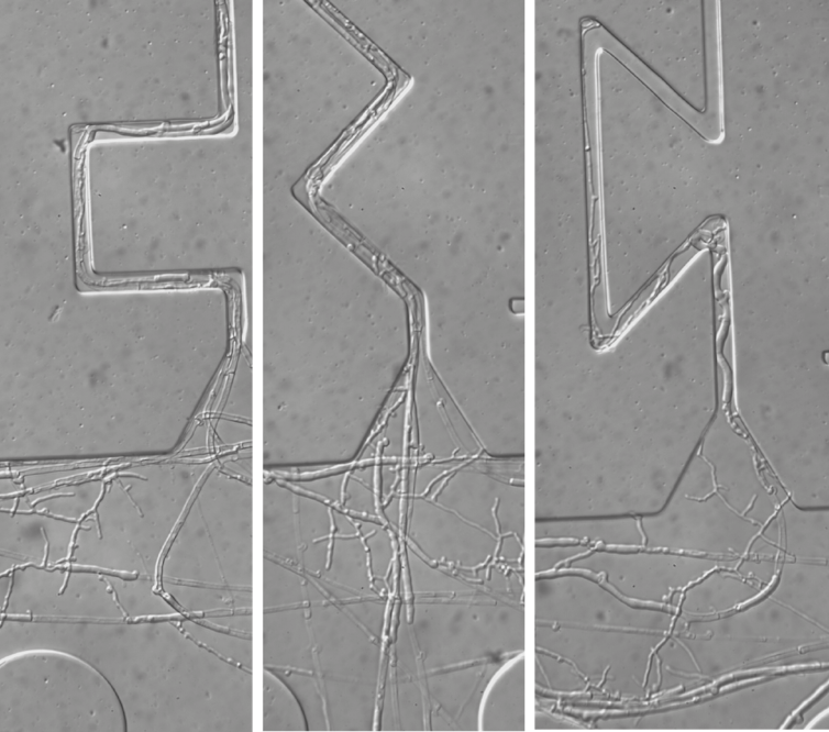 Our recent research used an artificial fungal obstacle course to spy on hyphal growth and behaviour. We found a remarkable variety of growth strategies employed by fungal hyphae – so many that we had to give them names.